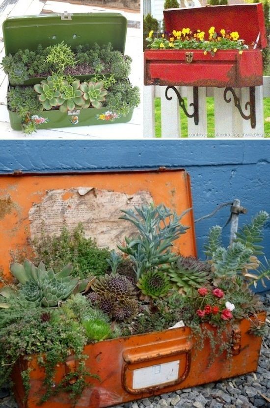 Vechile cutii din metal, va pot servi unui scop nobil prin refolosirea lor pe post de ghivece pentru plante. Curatati-le bine, revopsiti-le daca este cazul, si gata, aveti noi recipiente pentru gradina. Nu uitati sa le gauriti pentru a asigura un drenaj optim plantelor.