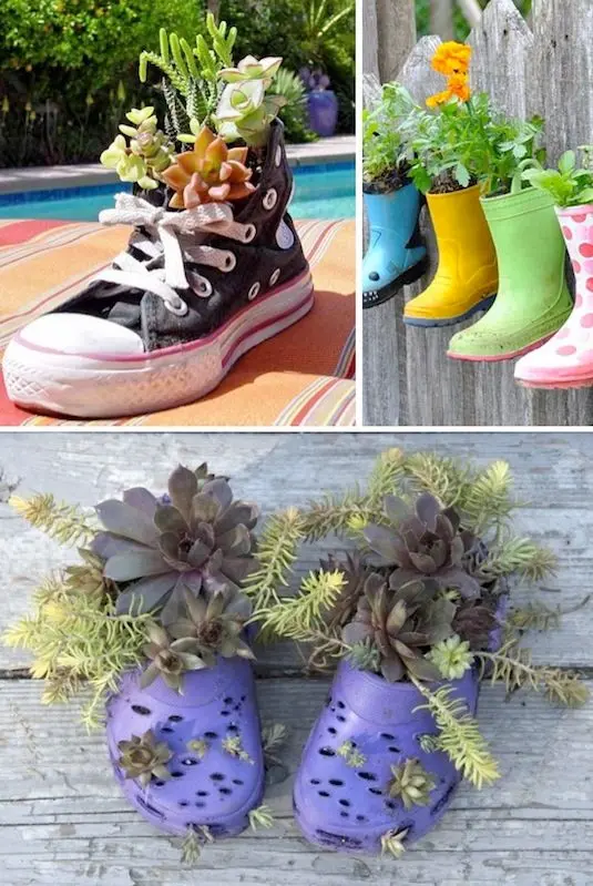 Deschide Galeria Cizmele vechi sau alte incaltari vechi, care nu mai pot fi purtate, sunt o idee traznita si simpatica de suporturi pentru plantele din gradina. Le puteti vopsi in culori diferite pentru a crea mai mult dinamism gradinii.