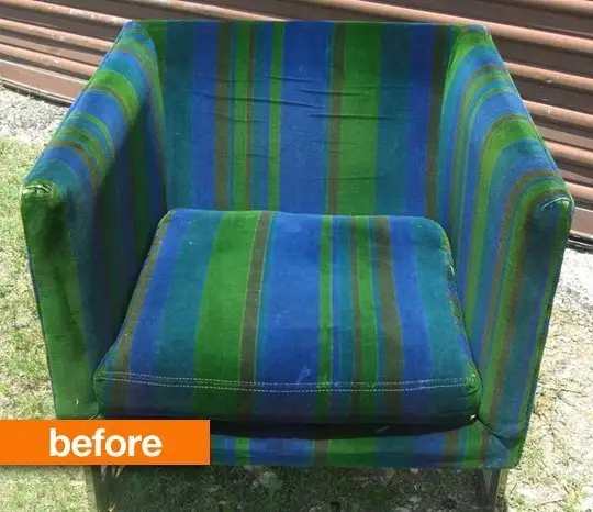 Acesta a fost si modul prin care Dena, un tanar designer interior, a dat peste acest fotoliu aflat intr-o stare foarte avansata de uzura. Urmarind un grup de vanzare/cumparare pe Facebook, Dena a vazut o poza cu un fotoliu uzat si s-a indragostit direct de forma acestei piese de mobilier.