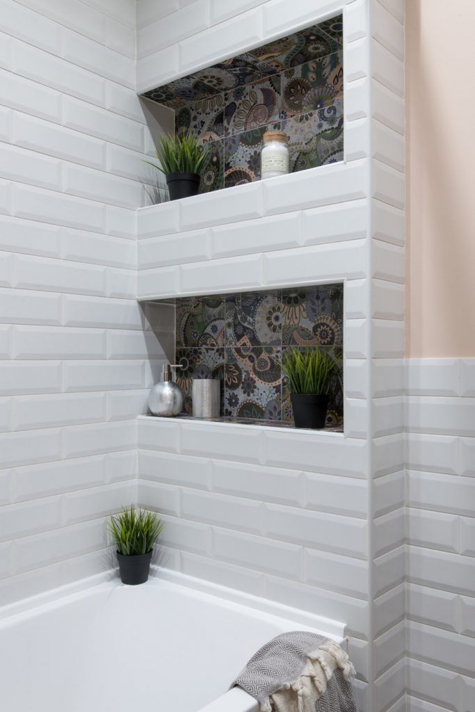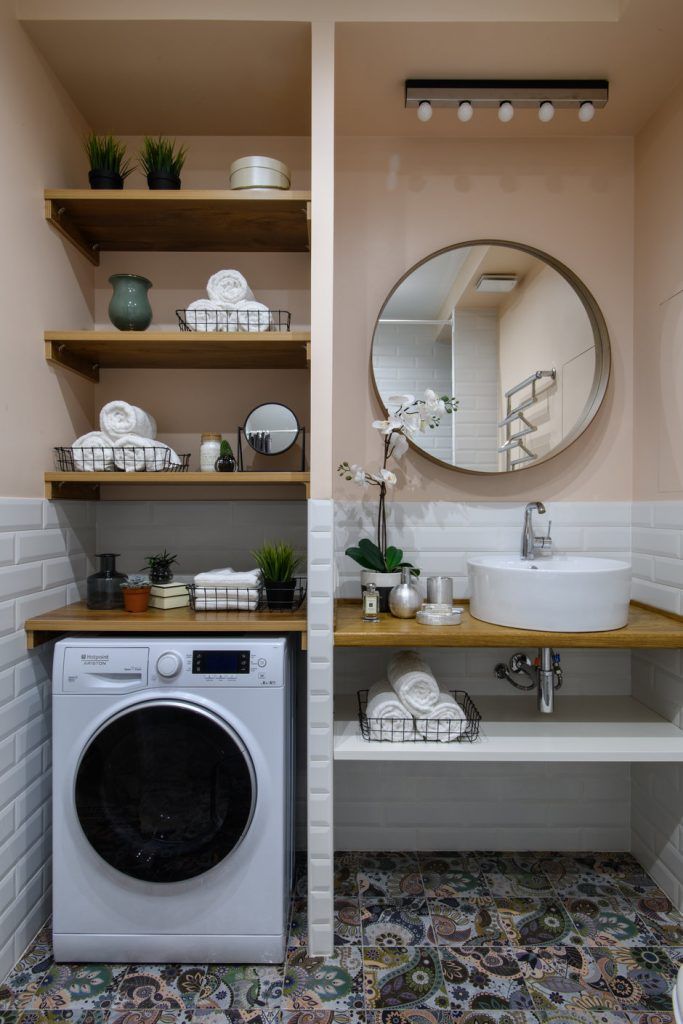 Pentru baie s-a mers pe aceeasi linie a optimizarii, oferind cele necesare unui astfel de spatiu, incluzand si masina de spalat rufe. S-au folosit placi ceramice albe tip metro pentru zonele de stropire, iar restul spatiului zugravit cu vopsea speciala pentru spatii umede; la nivelul pardoselii, din nou placi decorative viu colorate.