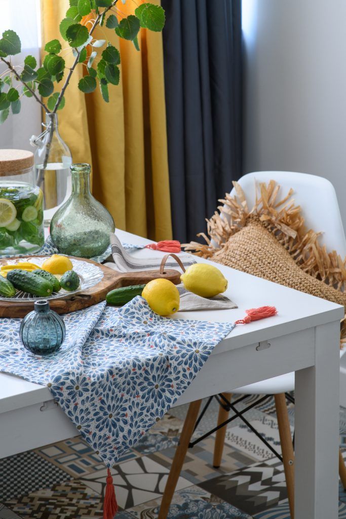 Pentru mobilierul bucatariei, Anna a mers pe linia unui design simplu, cu front alb, lucios, iar spatiul dintre corpuri l-a amenajat cu placi ceramice decorative, aceleasi folosite si pentru pardoseala fostei logii, acum zona de luat masa. Alaturi de perimetrul cu canapea si televizor, acest spatiu face parte din zona de socializare dorita de tanara inca de la inceputul proiectului. Rezolvarea aceasta s-a dovedit a fi cea optima.