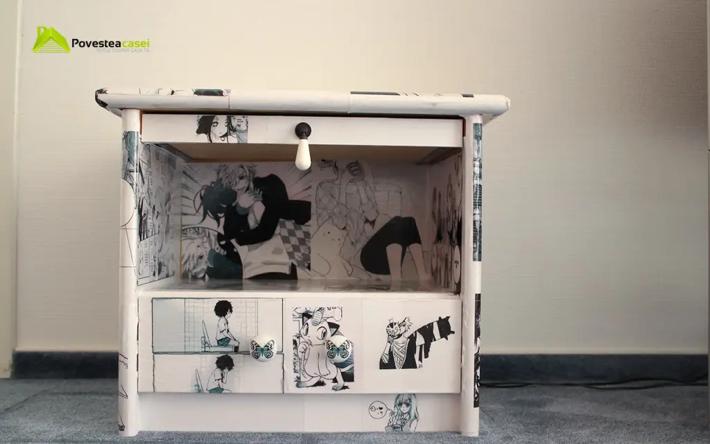 Proiect D IY reconditionarea unor obiecte de mobilier cu ajutorul printurilor de inspiratie anime a constituit un moment placut pentru intreaga familie