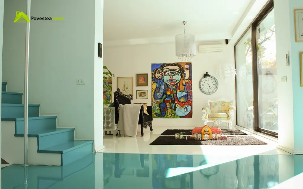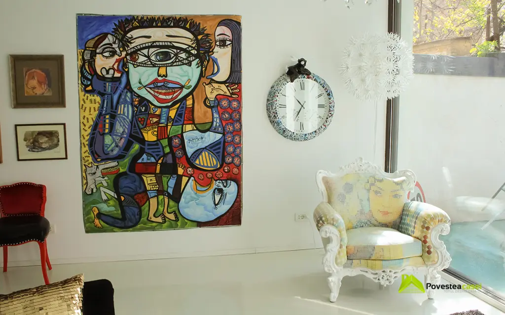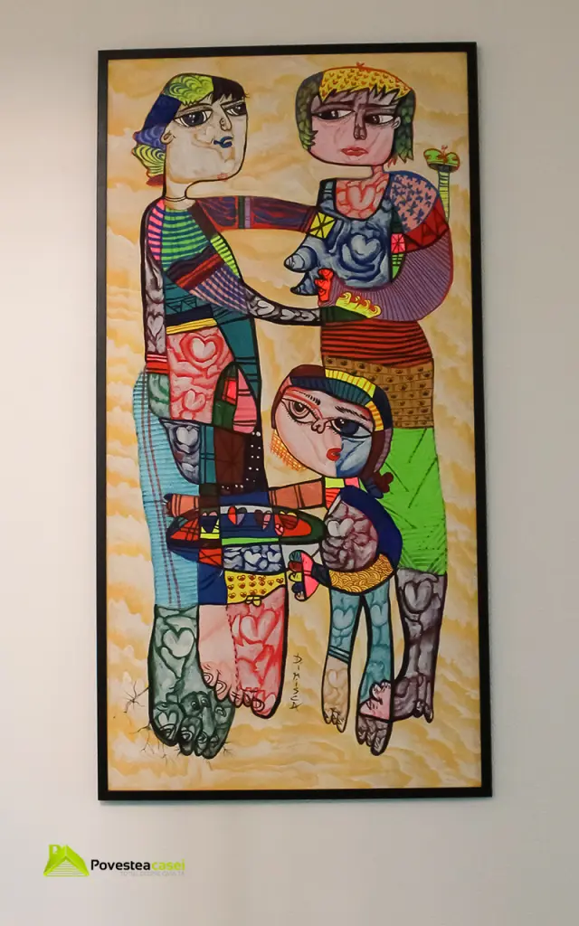 Proprietarii casei sunt mari iubitori de arta contemporana, in special ai pictorilor si graficienilor autohtoni