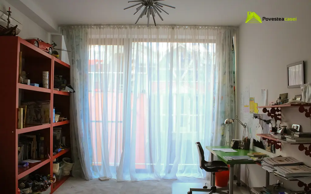 Etajul apartine dormitoarelor, bailor omoloage si a colturilor cosy pentru citit. Dormitorul baietelului ne avertizeaza inca de la intrare ca avem de a face cu un pasionat de bolizi de Formula 1, de scrima si de lectura. Pe marginea pervazului, la loc de cinste, sunt insiruite totemuri adunate din calatorii, intr-o ordine numai de posesor stiuta.