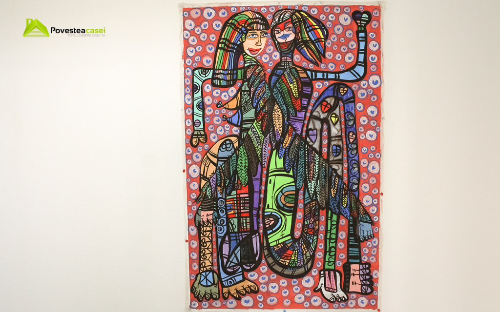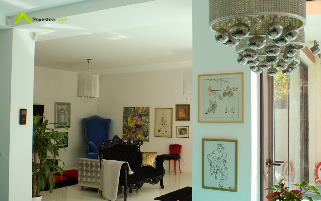 Proprietarii casei sunt mari iubitori de arta contemporana, in special ai pictorilor si graficienilor autohtoni