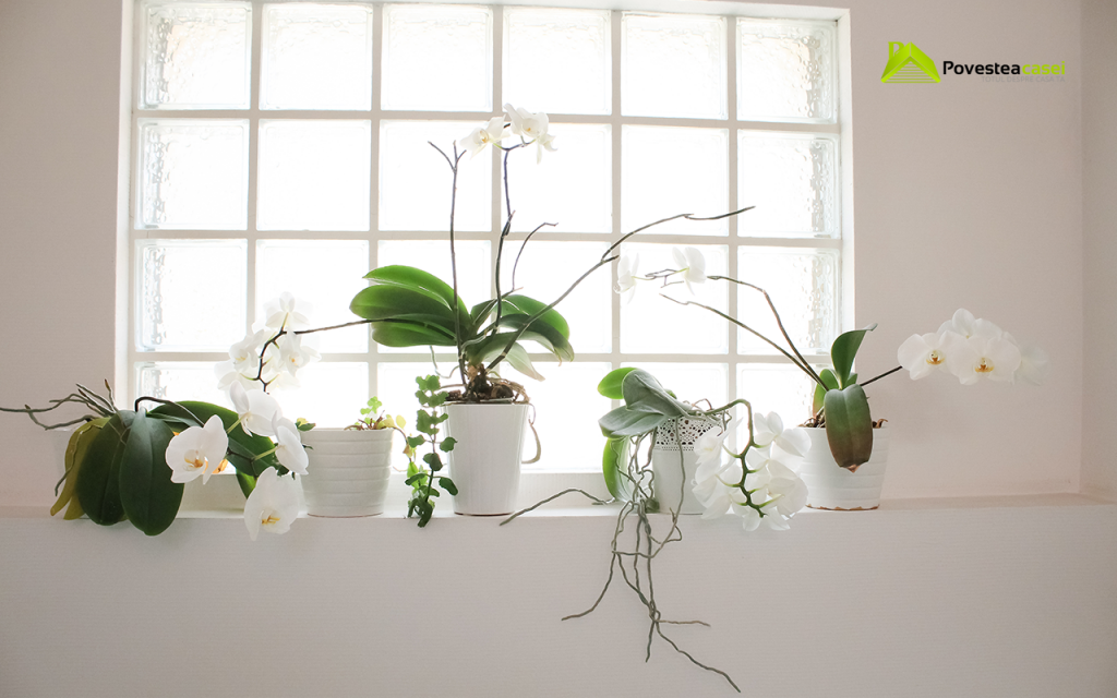 Coltul viu dintre etaje existenta ferestrelor in holul scarii interioare a fost fructificat ca spatiu de expunere a plantelor ornamentale