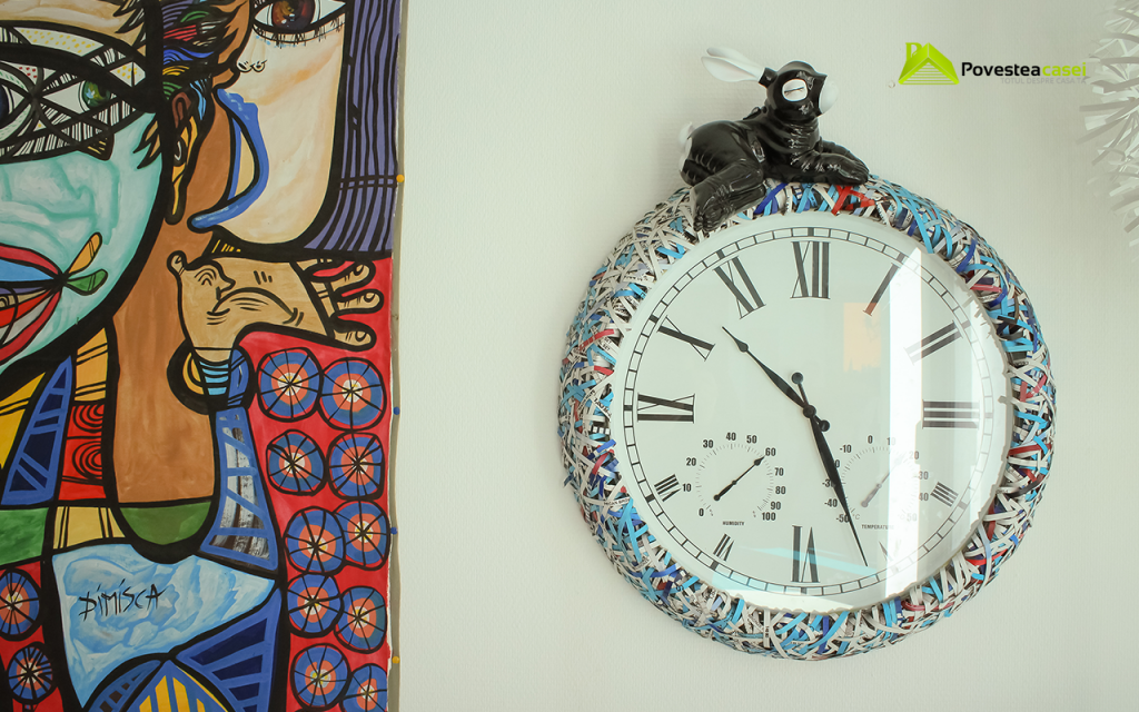 Iepurele pop-art a fost adaugat ceasului, intr-o tentativa de a personaliza, prin contrast, un detaliu al livingului