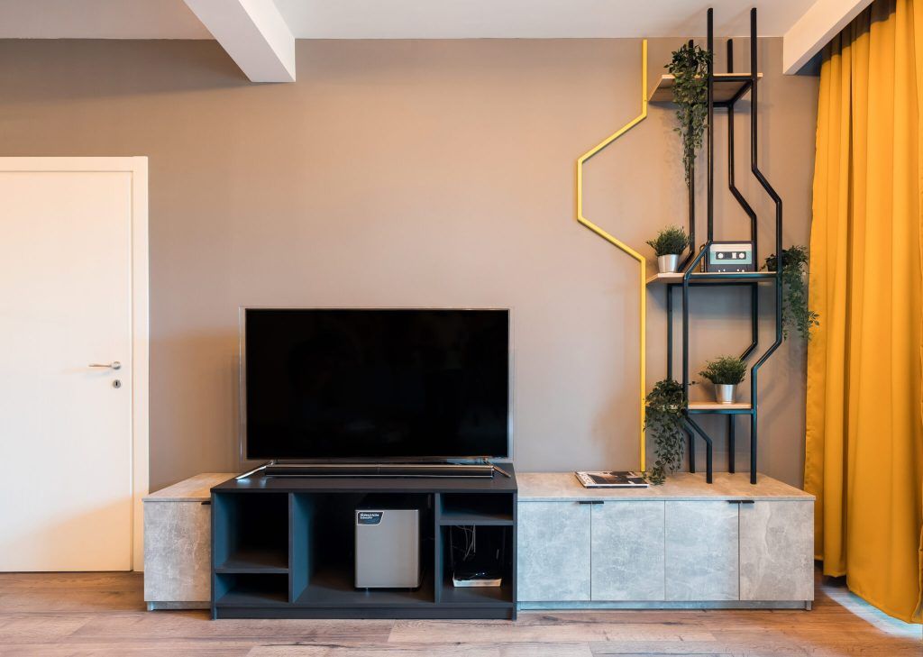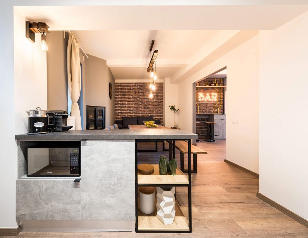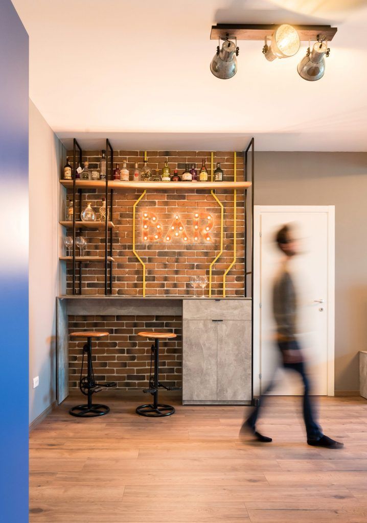Atmosfera primitoare, relaxanta, este asigurata si de multiplele optiuni de utilizare a spatiului printre care vedeta este zona de bar, cu litere luminoase de la Fabrica de Litere si scaune de bar achizitionate de la Vida XL. Canapeaua generoasa din living, locul de luat masa si balconul cu o priveliste fascinanta asupra orasului completeaza cu succes lista.