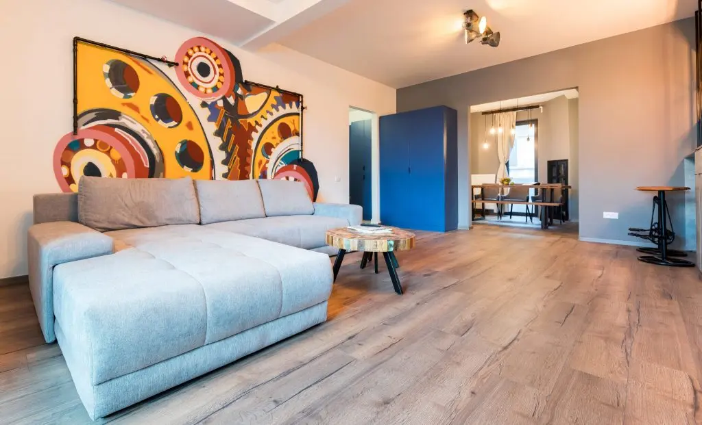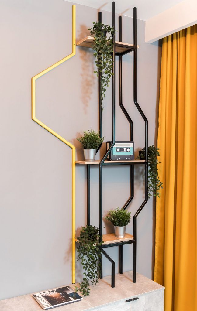 Punctul cheie al amenajarii il constituie peretele cu graffiti din living (realizat de Toybox), in spatele canapelei. Designerii ne povestesc ca graffiti-ul “incadreaza canapeaua si functioneaza ca un element ce incoroneaza intreaga amenajare si este dovada faptului ca am dorit ca apartamentul, in ciuda influentelor industriale, sa ramana unul plin de culoare.”