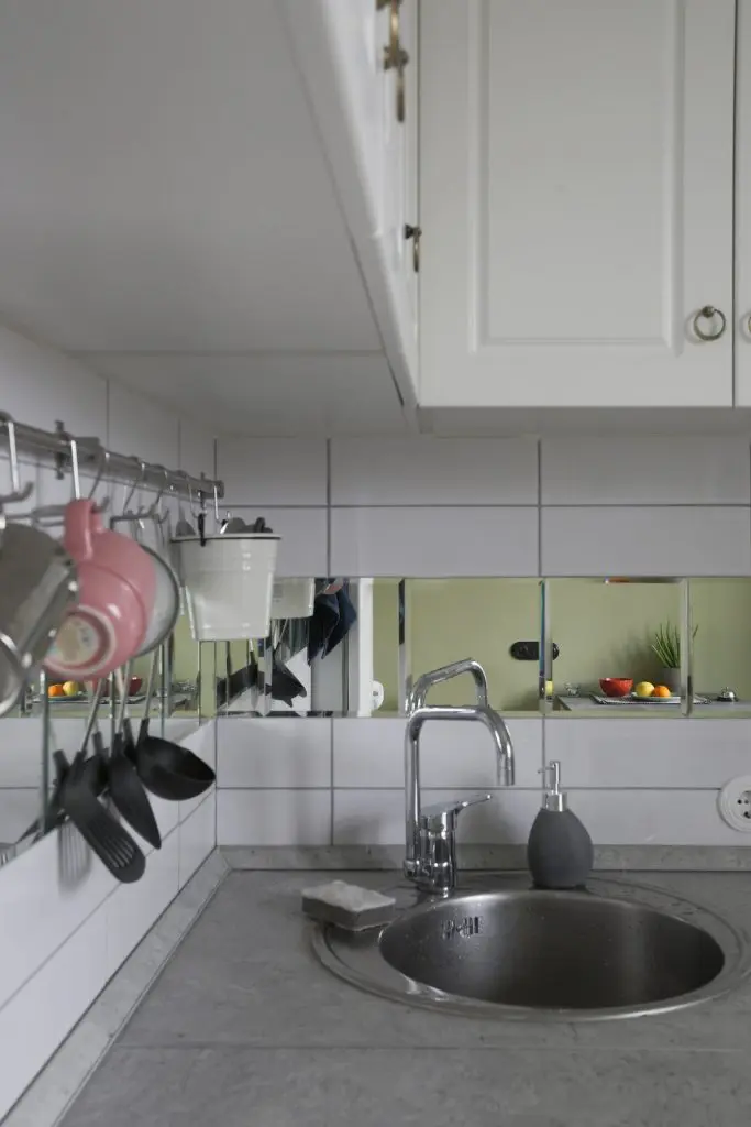 Pentru finisaje si decoratiuni au fost propuse materiale practice care sa se incadreze in bugetul stabilit initial. Regasim o pardoseala din parchet laminat, peretii din living au fost finisati cu tapet lavabil; backsplashul de la bucatarie a fost placat cu oglinda bizotata care mareste vizual spatiul.