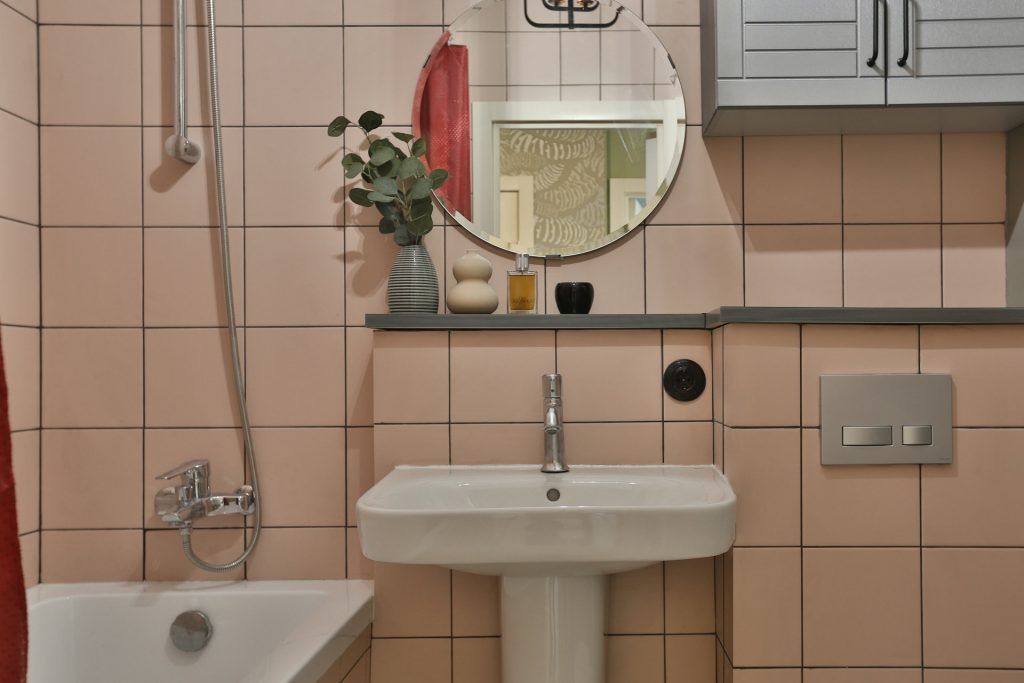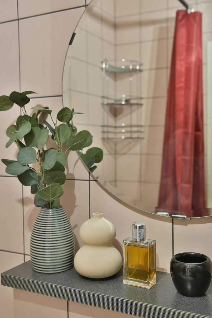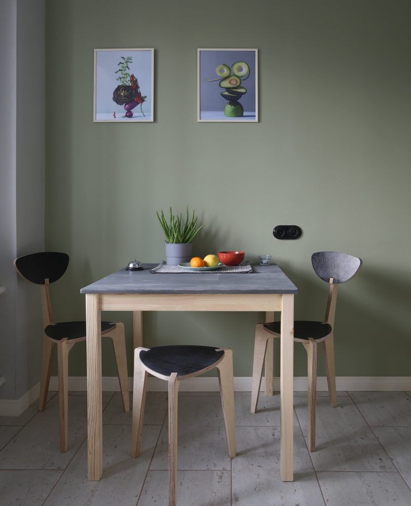 Limitarile in materie de design au fost impuse de tubulatura de ventilatie intre bucatarie si baie si peretele portant intre bucatarie si living, ceea ce a condus la renuntarea la ideea de a amenaja un apartament de tip studio.