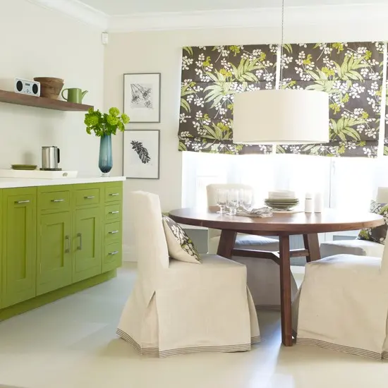 Pentru a inviora putin atmosfera din bucatarie foloseste cateva flise dintr-un verde pal deasupra chiuvetei sau dedesubtul dulapurilor. Efectul va fi garantat!