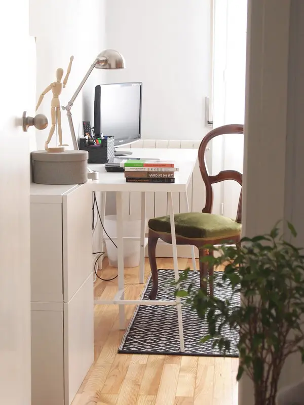 Apartamentul de 85 mpa fost astfel structurat, incat sa satisfaca cele mai esentiale nevoi ale cuplului: bucataria, living-ul, doua dormitoare, un birou si o baie. Ramele usilor si ale ferestrelor au fost vopsite integral in alb pentru a reflecta lumina naturala cu scopul unei bune iluminari si a crearii senzatiei de spatialitate in apartament. Usa dubla a fost transformata intr-o simpla arcada pentru a castiga spatiu. Contrastul intre piesele de mobilier vechi si cele noi este vizibil la tot pasul.