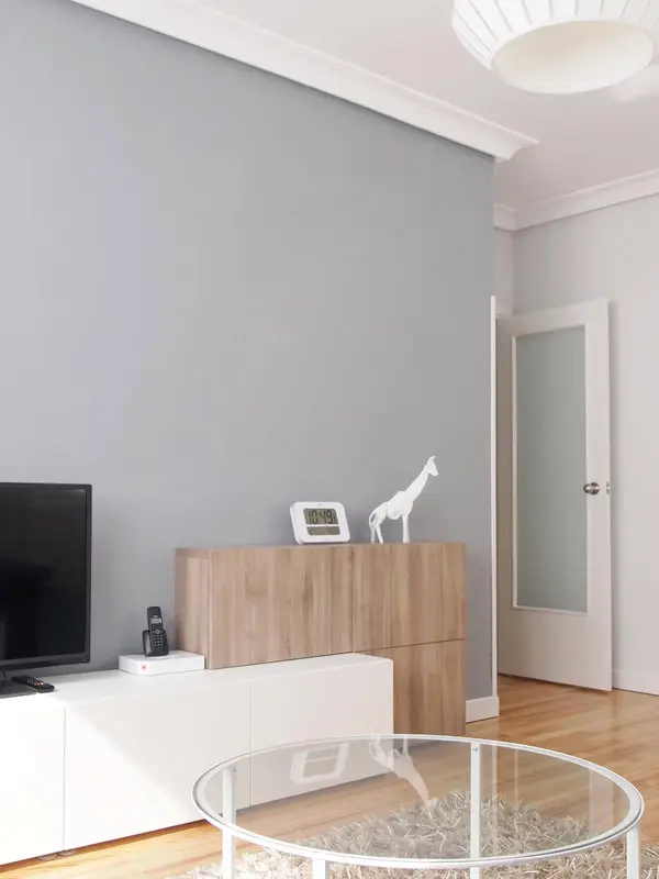 O mare parte a pieselor de mobilier vintage au fost pastrate, iar acum impart spatiul cu noile piese achizitionate creand un efect de unitate spectaculos. Griul suav al peretilor te introduce in atmosfera linistita din casa unui cuplu. Podeaua originala in tonuri calde a fost de asemenea reconditionata.