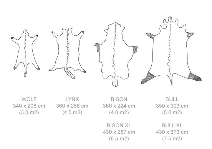 Covoarele Roadkill vin in diferite forme, cum ar fi blana de lup, blana de ras, blana de bizon si blana de taur, avand caracteristici specifice fiecarui animal si fiind realizate pe o scala putin mai mare decat proportiile naturale ale animalelor.