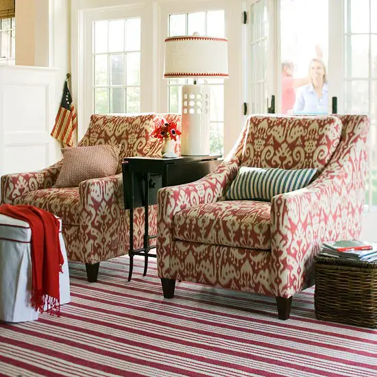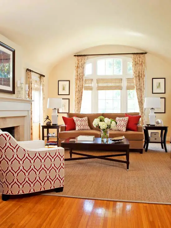 Puteti obtine accentul dorit fara a incarca intreaga incapere cu rosu. Cel mai simplu este sa folositi accente de rosu in diverse parti cum ar fi perdelele, draperiile, pernele decorative, covorul sau un corp de iluminat. Nuantele de rosu functioneaza la fel de bine pentru toate elementele mentionate mai inainte.