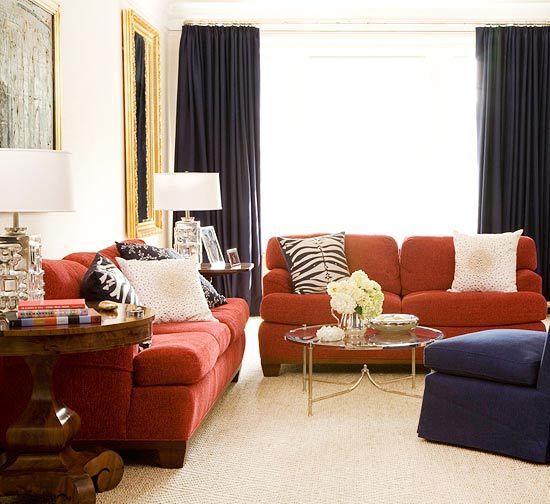 Puteti obtine accentul dorit fara a incarca intreaga incapere cu rosu. Cel mai simplu este sa folositi accente de rosu in diverse parti cum ar fi perdelele, draperiile, pernele decorative, covorul sau un corp de iluminat. Nuantele de rosu functioneaza la fel de bine pentru toate elementele mentionate mai inainte.