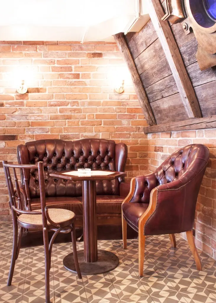 Decorul este cu siguranta unul eclectic care reuseste sa imbine mai multe zone intr-un spatiu restrans si open space: barul de marmura care este principalul punct de atractie al locatiei cu blatul de cupru si rafturile de sticle inalte pana in tavan, semineul cu canapelele si fotoliile de piele care formeaza un spatiu ideal pentru a sta la taclale cu o bautura fina si un trabuc, zona de langa intrare cu canapeaua lunga in stil “american diner” si nu in ultimul rand, preferata noastra, masa mare centrala supradimensionata special pentru a gazdui oameni care nu se cunosc si pe care faptul ca stau la aceeasi masa ii provoaca sa socializeze.