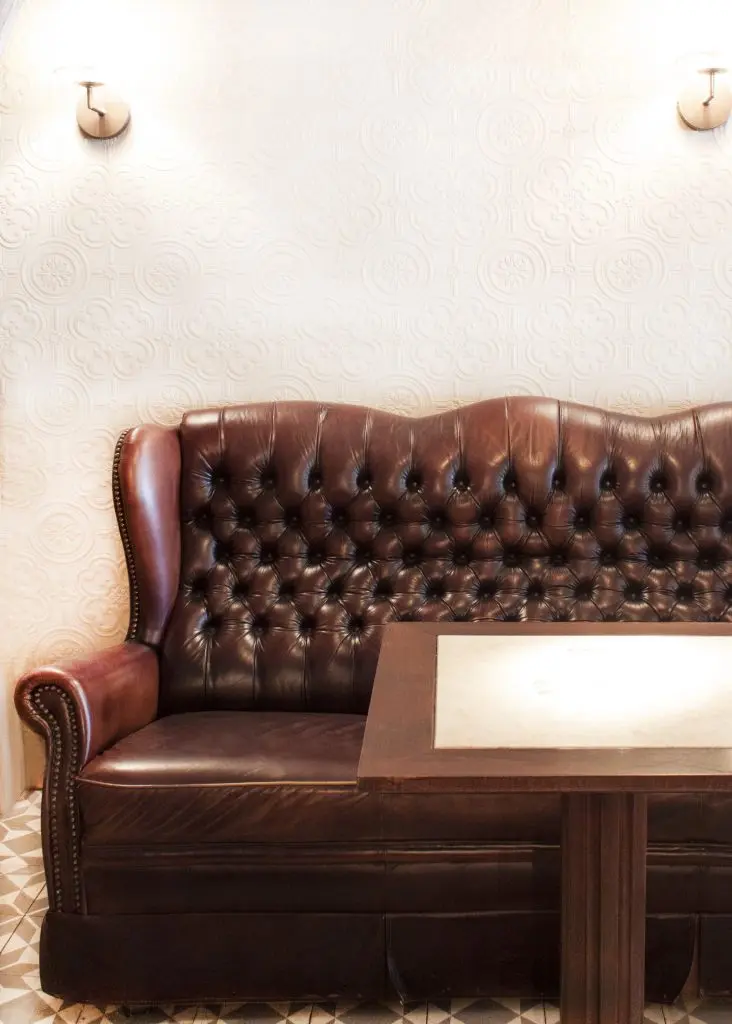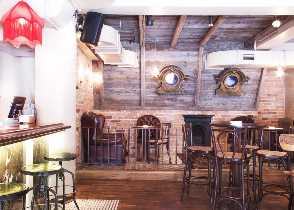 Deschide GaleriaAmenajarea localului a durat patru luni, iar materialele folosite difera de la cupru, marmura, caramida, tapet embosat, oglinzi antichizate, candelabru de cristale, mozaic ceramic si paravane antice chinezesti pana la lemn reciclat precum cel de pe tavan care provine dintr-un hambar vechi de pa langa Sibiu. Cea mai mare parte a mobilerului a fost confectionat la o fabrica de langa Cluj, iar o alta parte a fost cumparat de la anticariat sau comandat din strainatate.