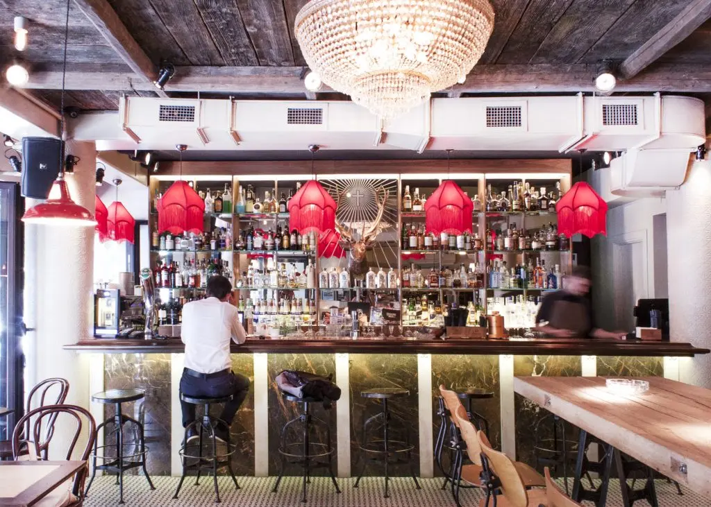 Amenajarea localului a durat patru luni, iar materialele folosite difera de la cupru, marmura, caramida, tapet embosat, oglinzi antichizate, candelabru de cristale, mozaic ceramic si paravane antice chinezesti pana la lemn reciclat precum cel de pe tavan care provine dintr-un hambar vechi de pa langa Sibiu. Cea mai mare parte a mobilerului a fost confectionat la o fabrica de langa Cluj, iar o alta parte a fost cumparat de la anticariat sau comandat din strainatate.