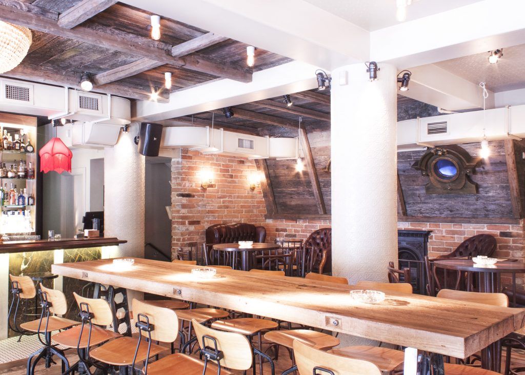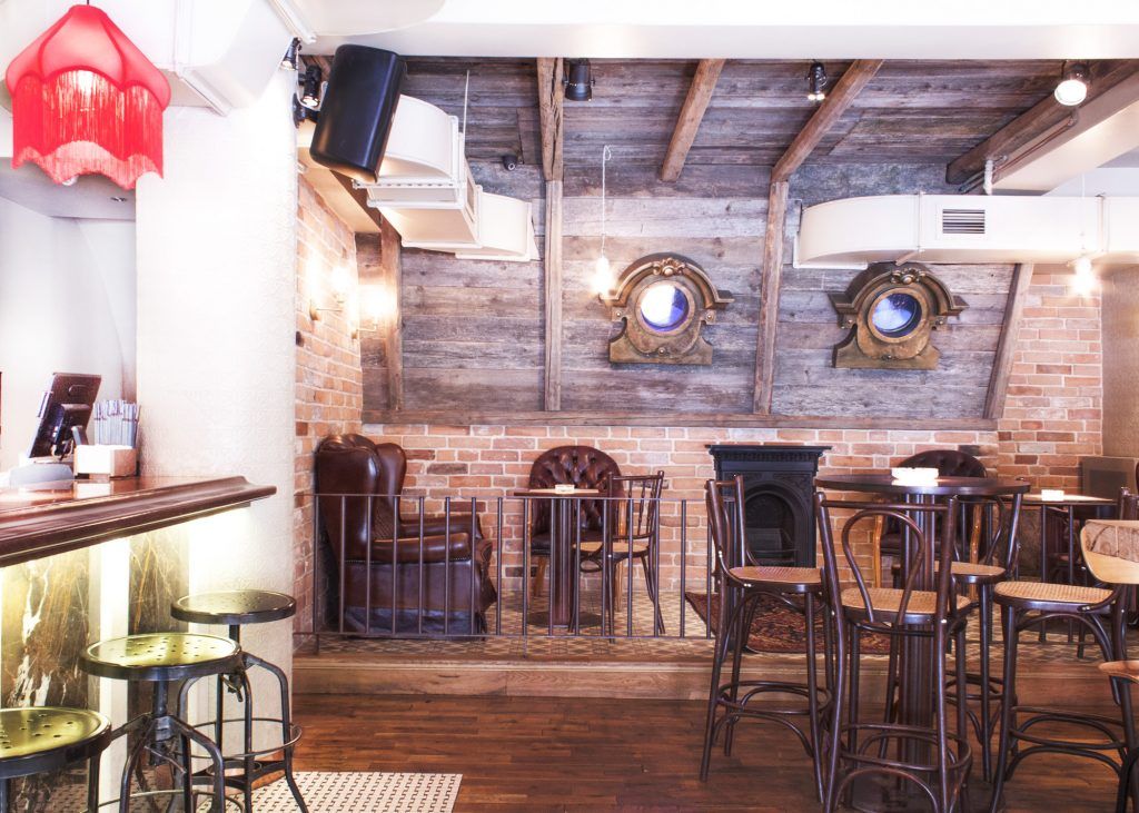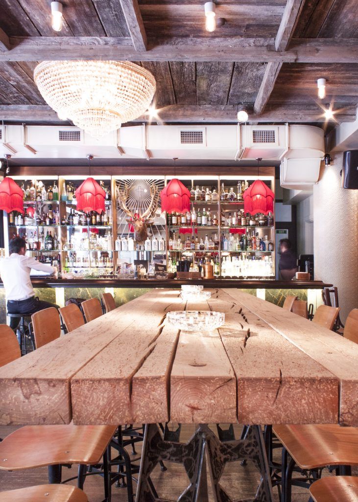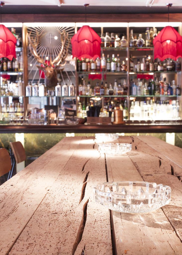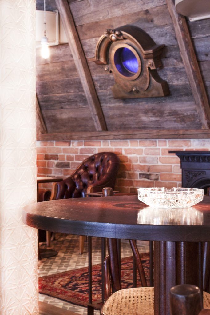 Decorul este cu siguranta unul eclectic care reuseste sa imbine mai multe zone intr-un spatiu restrans si open space: barul de marmura care este principalul punct de atractie al locatiei cu blatul de cupru si rafturile de sticle inalte pana in tavan, semineul cu canapelele si fotoliile de piele care formeaza un spatiu ideal pentru a sta la taclale cu o bautura fina si un trabuc, zona de langa intrare cu canapeaua lunga in stil “american diner” si nu in ultimul rand, preferata noastra, masa mare centrala supradimensionata special pentru a gazdui oameni care nu se cunosc si pe care faptul ca stau la aceeasi masa ii provoaca sa socializeze.
