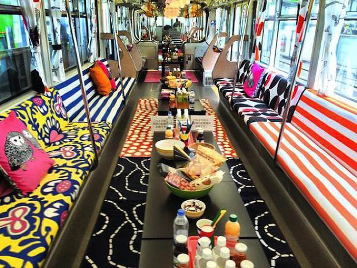 Modul in care a fost amenajat acest tren este unul socant, din toate punctele de vedere, starnind uimire in privirile oricarui calator din Tokyo care mergea la munca sau se intorcea acasa. Fiecare vagon arata ca o sufragerie moderna, decorata pana la ultimele detalii cu mobilier de ultima generatie, in ton cu toate tendintele si trendurile actuale.