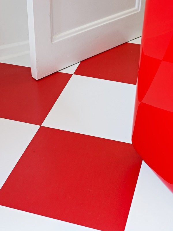 Pardoseala preia motivul alb-rosu al amenajarii, realizand astfel un decor indraznet, dar armonios.