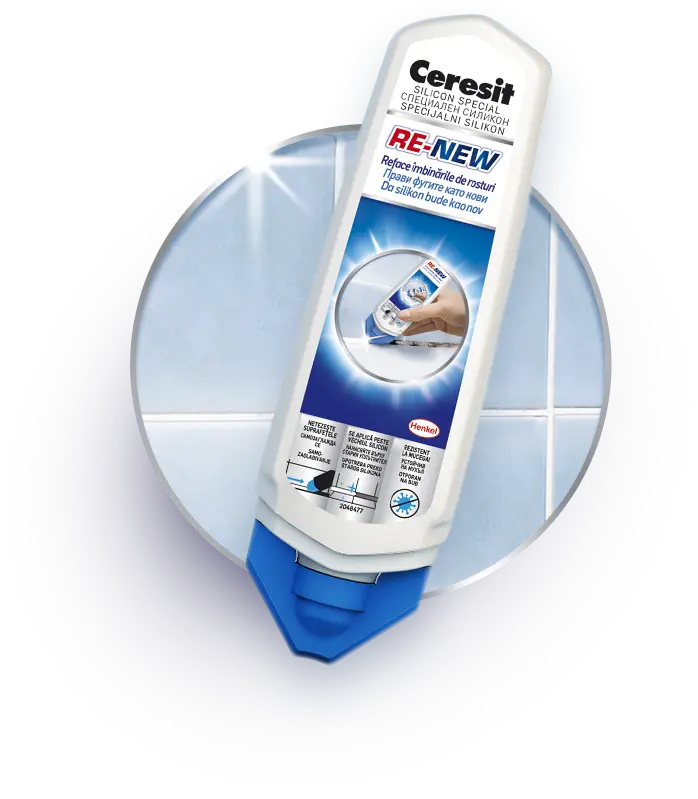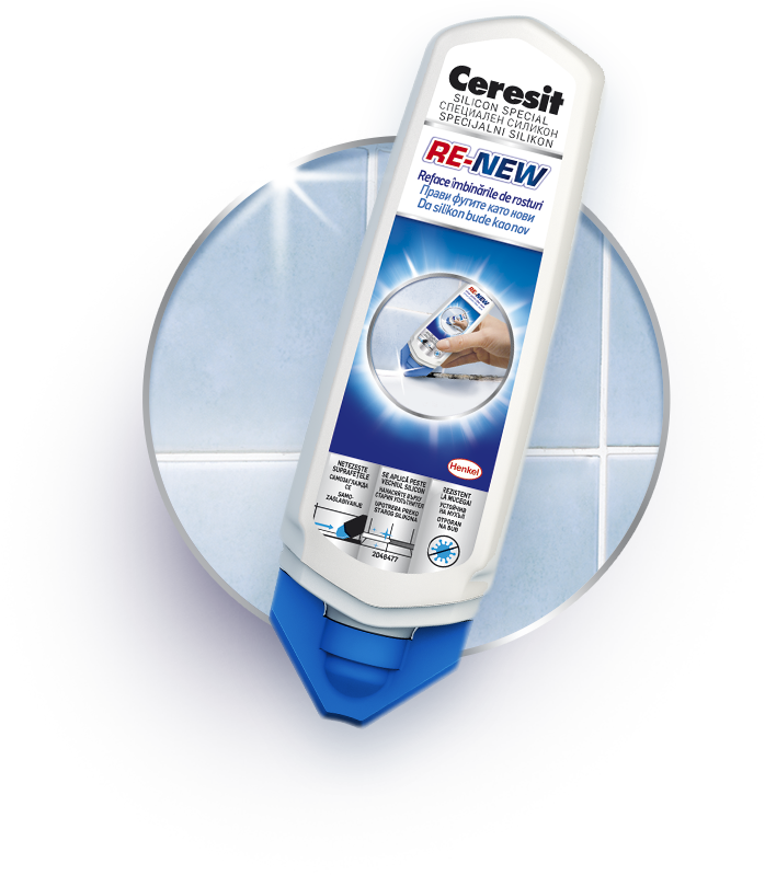 Ceresit Re-New este o solutie inovatoare, un silicon cu o formula pe baza de apa ce poate fi aplicat peste stratul vechi. Il poti utiliza pentru rosturile triunghiulare orizontale, este inodor si poate fi aplicat chiar si peste siliconul colorat. Iti va fi de mare ajutor daca doresti sa acoperi petele sau sa umpli fisurile mici aparute in stratul vechi.
