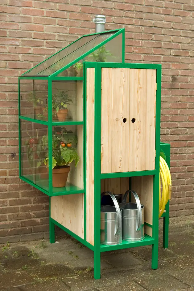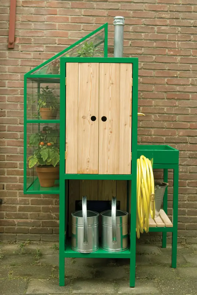 Designul final al acestui spatiu de depozitare inedit, denumit Watercabinet (Dulapul cu apa), poate stoca toate uneltele necesare plantarii si asigura si irigatia unei gradini mici, prin sistemele incorporate in interior.