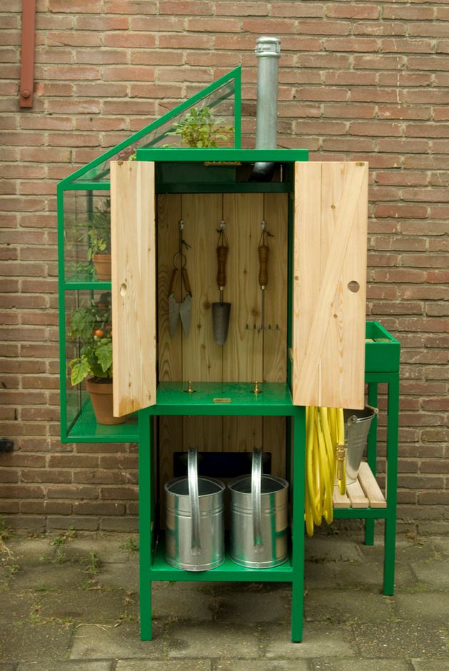 Designul final al acestui spatiu de depozitare inedit, denumit Watercabinet (Dulapul cu apa), poate stoca toate uneltele necesare plantarii si asigura si irigatia unei gradini mici, prin sistemele incorporate in interior.