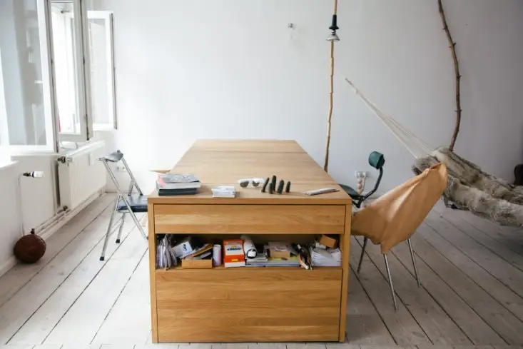Designerul Mira Schroder a creat o varianta ingenioasa, si anume un birou pat. Mecanismul este simplu; doar printr-o simpla rotire biroul de peste zi se transforma intr-un pat de marime medie, perfect pentru a te putea intinde si odihni jumatate de ora sau chiar pentru un somn mai lung pe timpul noptii.