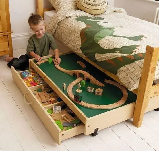 Loc de joaca pentru copii sertare cu pista de masinute sub pat