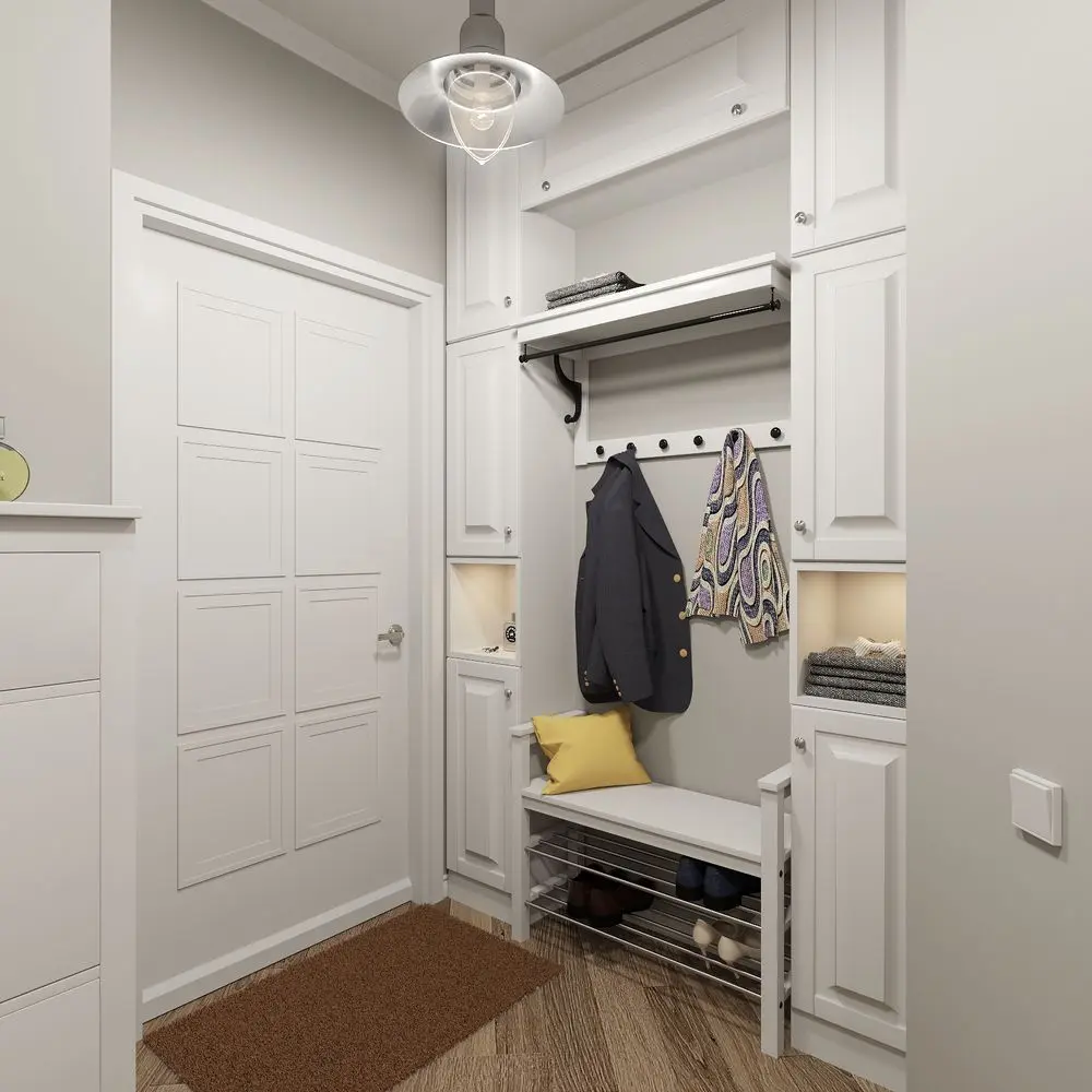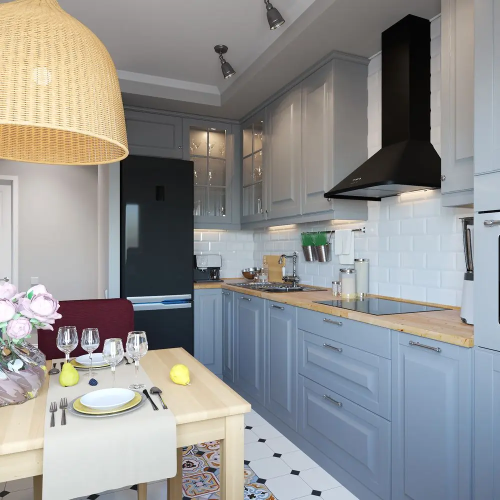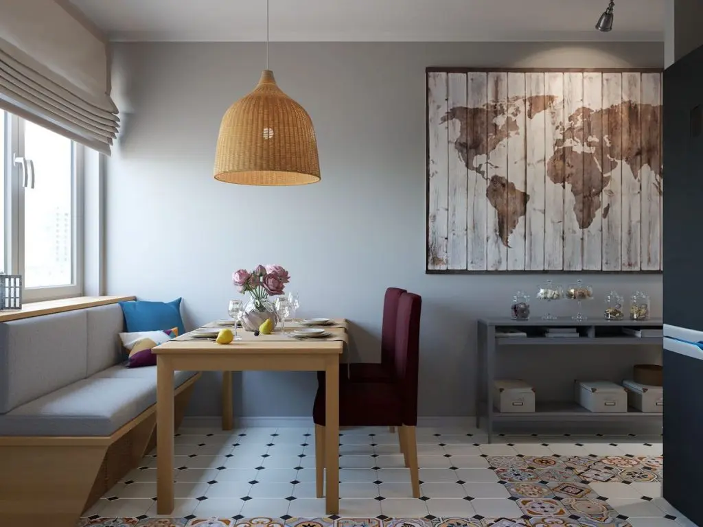 Vei recunoaste probabil stilul nordic in aceasta amenajare, prin cromatica neutra, cu tuse de culoare discret inserate; placile decorative de la nivelul pardoselii din bucatarie, alaturi de scaune, corp de iluminat si perne decorative inveselesc decorul.