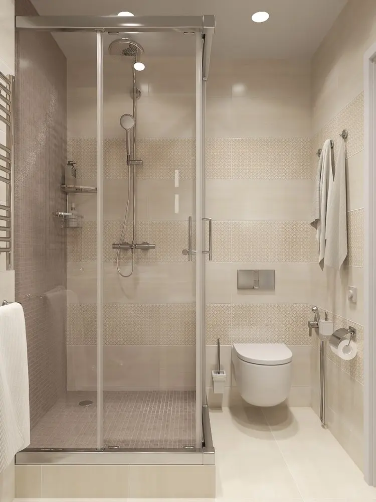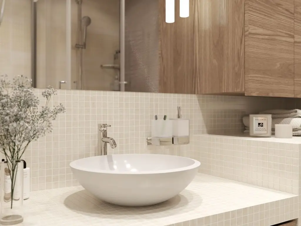 In baie, s-a mizat pe aceeasi linie neutra, incaperea fiind optimizata pentru a integra un dulap pentru depozitare deasupra masinii de spalat rufe sau sub lavoar. Cada a fost inlocuita cu o cabina de dus.