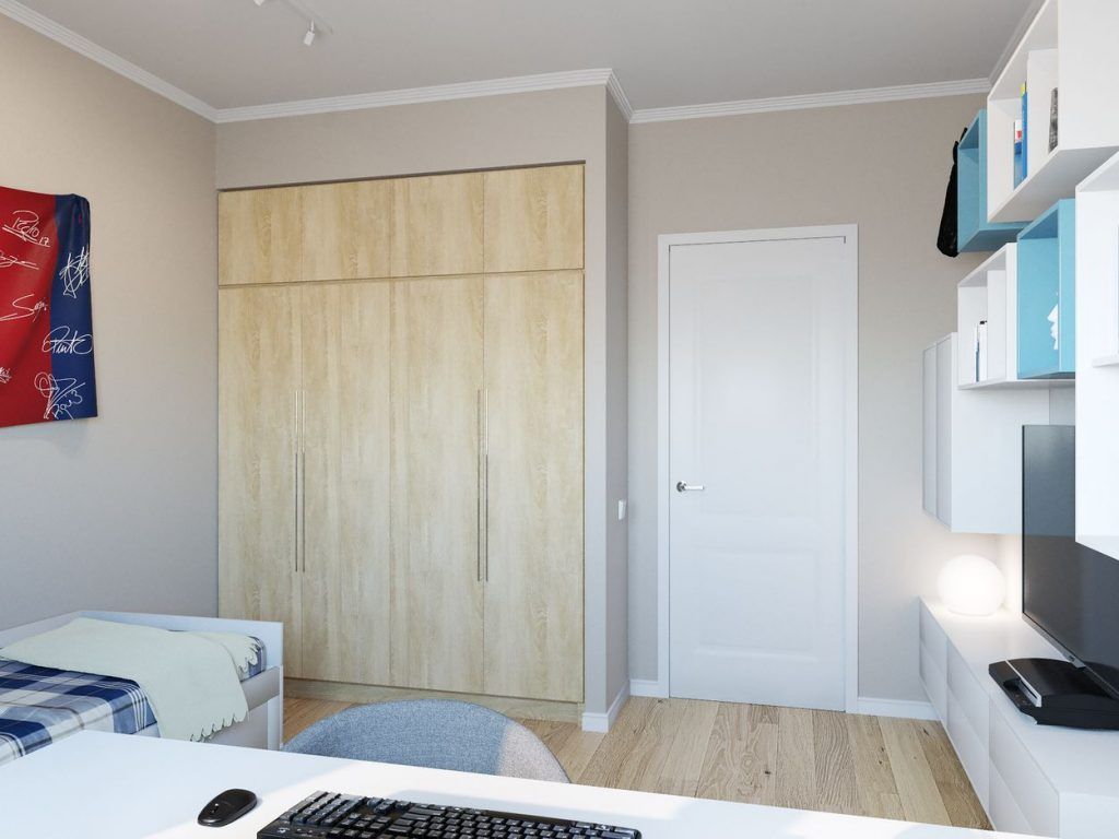 Linia designului simplu si practic este urmata si in camera copilului. Aici, a fost amenajata o nisa care sa adaposteasca dulapurile pentru haine. Rafturi tip cuburi completeaza spatiile de depozitare, iar sertarele de sub pat asigura si ele un plus de stocare.