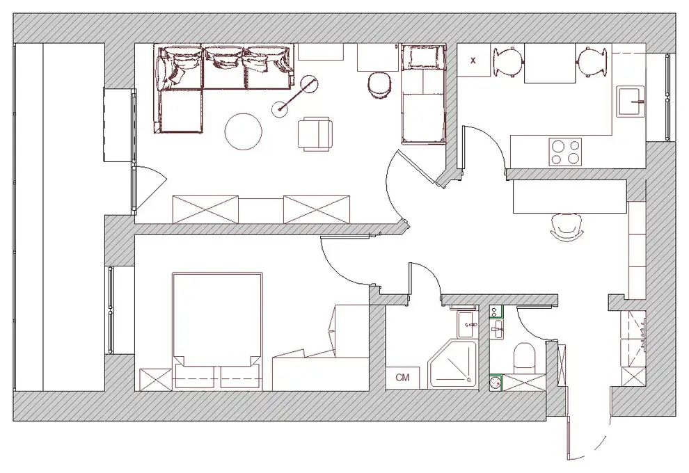 In cazul de fata vorbim de un apartament cu doua camere, compartimentat intr-o maniera functionala, dedicat atat relaxarii, cat si intreprinderii activitatilor zilnice intr-un mod cat mai facil.
