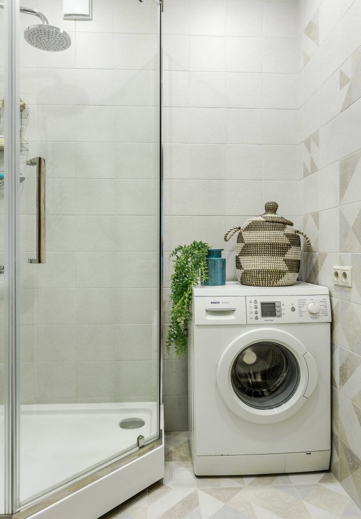 In spatiul baii se imbina armonios texturi diferite. Avem de o parte linii perfect geometrice si de cealalta o abstractizare a acestora transpusa intr-un mod modern fara a fi nevoie de o trasare liniara precisa. Punctul de atractie este oglinda rotunda incastrata care vine insotita de un led propriu pentru o iluminare mai precisa.