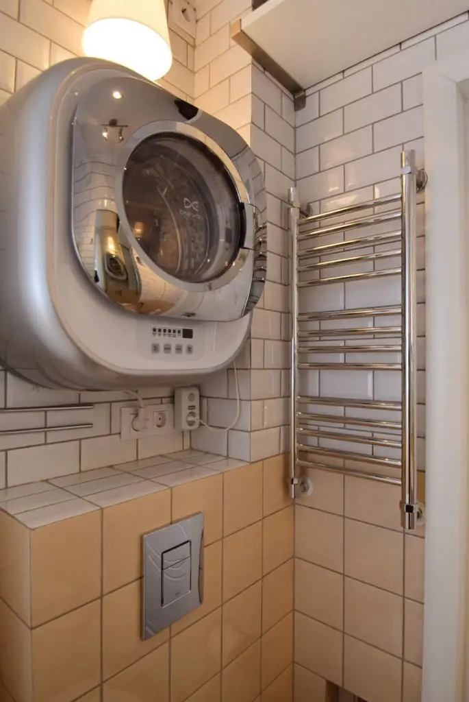 In baie, solutiile de optimizare a spatiului, au inclus crearea unor nise in perete pentru depozitare de produse de ingrijire si o masina de spalat rufe suspendata, pozitionata deasupra bazinului toaletei.