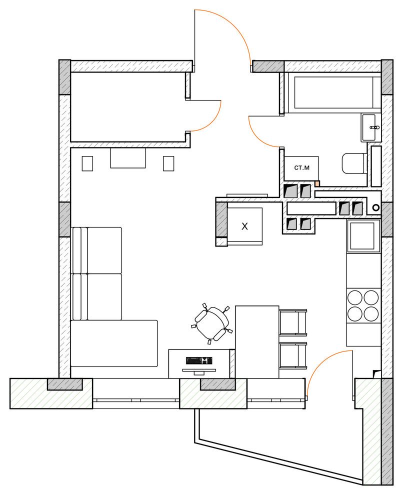 Deschide GaleriaLocuinta de amenajat are o suprafata de 30 de metri patrati si se afla intr-un bloc nou din Moscova. Beneficiarii au gandit ca pentru o optimizare a spatiului, vor uni bucataria cu camera principala, insa de aici si pana la realizarea propriu-zisa a fost necesara cooptarea specialistilor care sa-i ajute cu un proiect care sa includa toate functiunile necesare.
