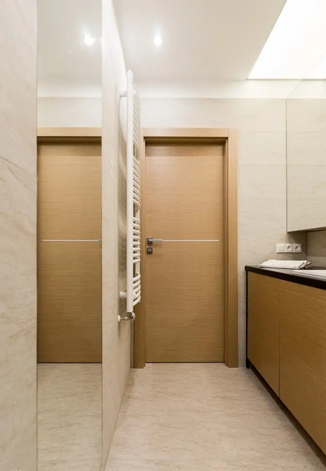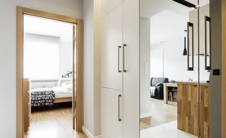 Principala zona de depozitare a locuintei se afla in hol, unde au fost amenajate dulapuri, o parte avand usile acoperite cu oglinzi pentru a crea iluzia de spatialitate, necesara intr-un loc mic precum acesta.