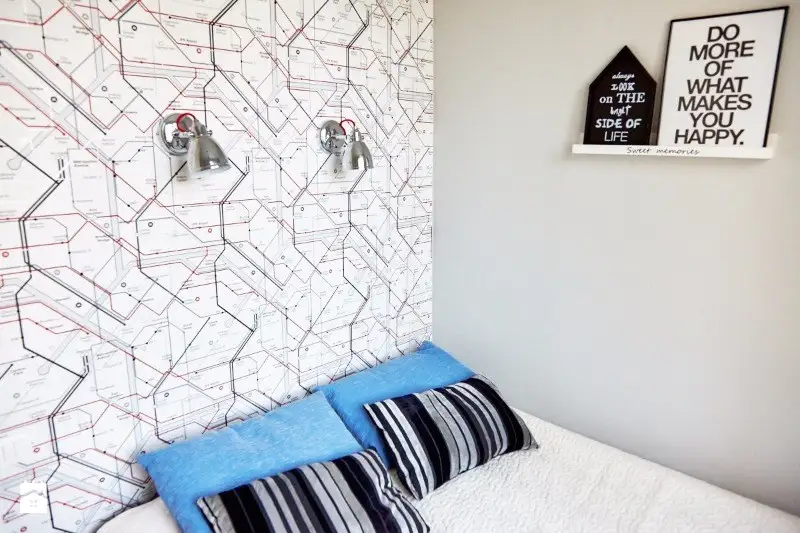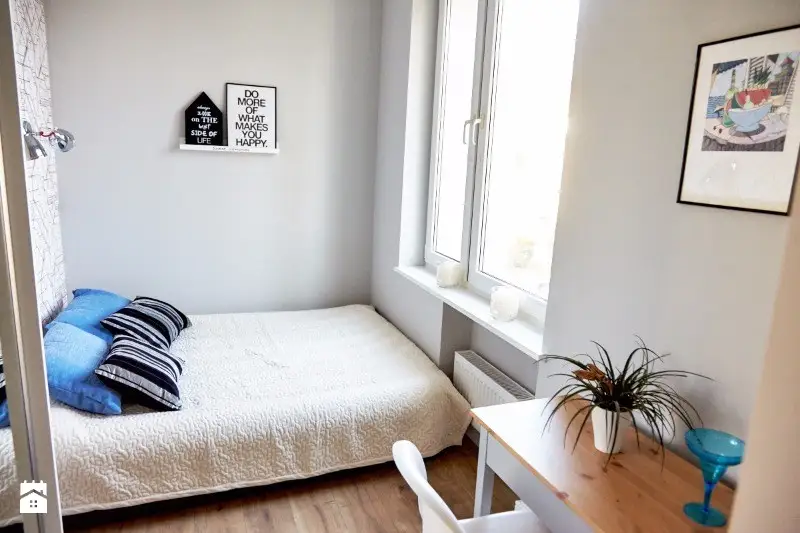 Dormitorul nou creat a permis integrarea unui pat, a unui dulap pentru haine si a unui birou mic. Un perete-accent conturat cu un foto-tapet atrage atentia in decor. Gratie ferestrei mari, camera este luminoasa si pare mai spatioasa.