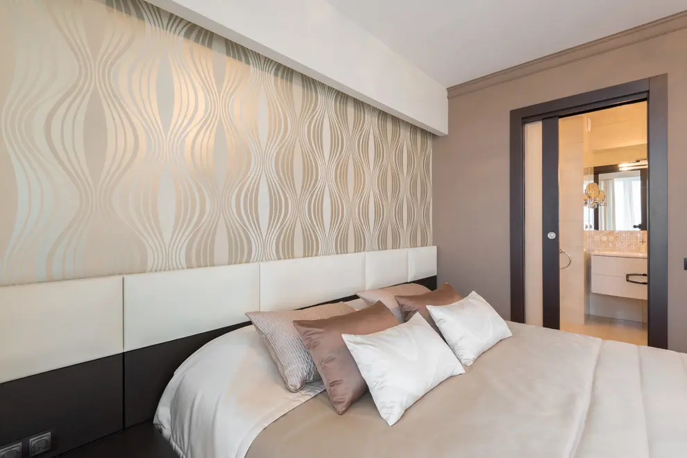Dormitorul preia linia designului abordat in living, texturile si paleta de culori creand un ambient cald, confortabil. Materialele pretioase, lucioase predomina si aici, iar lustra isi are rolul marcant. Decor creat in acelasi spirit feminin vom gasi si in cele doua bai amenajate ca adevarate sanctuare ale relaxarii. De invidiat!