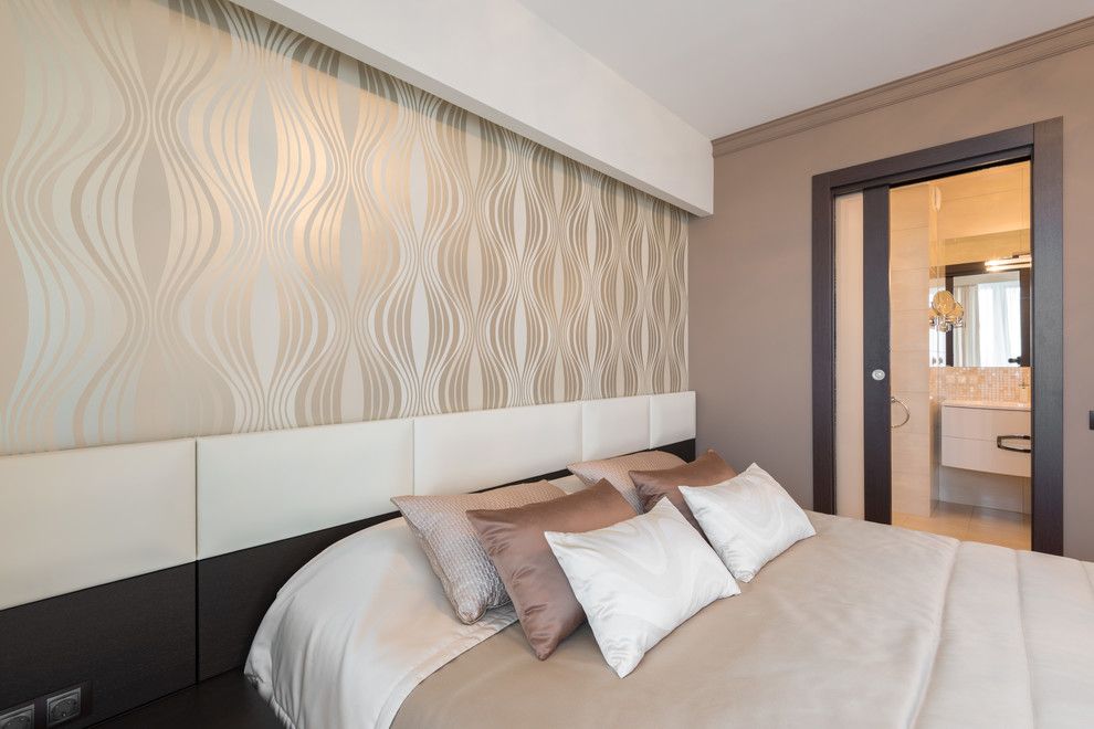 Dormitorul preia linia designului abordat in living, texturile si paleta de culori creand un ambient cald, confortabil. Materialele pretioase, lucioase predomina si aici, iar lustra isi are rolul marcant. Decor creat in acelasi spirit feminin vom gasi si in cele doua bai amenajate ca adevarate sanctuare ale relaxarii. De invidiat!