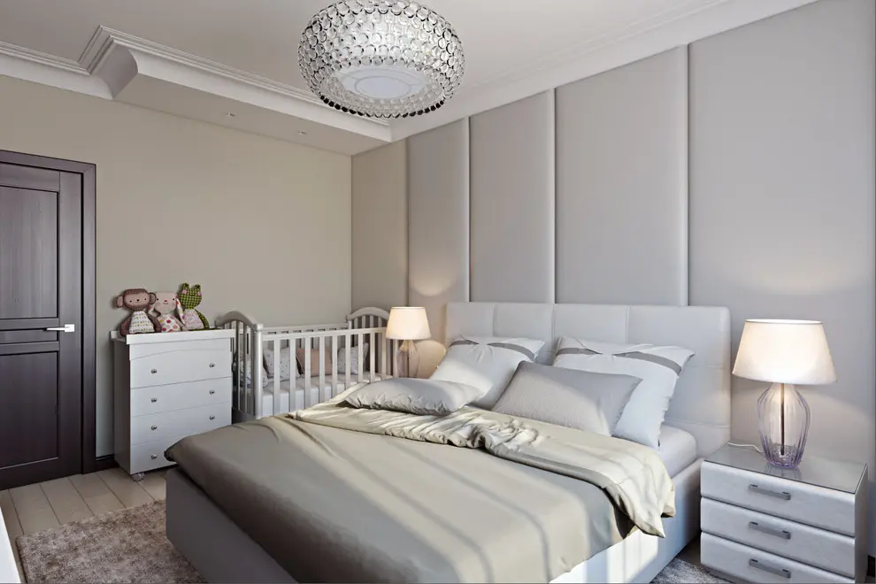 Dormitorul matrimonial inspira confort si rafinament deopotriva. Decorul preia paleta de culori dezvoltata in camera de zi; i se adauga o experienta senzoriala imbogatita de texturile percepute la nivelul amenajarii.
