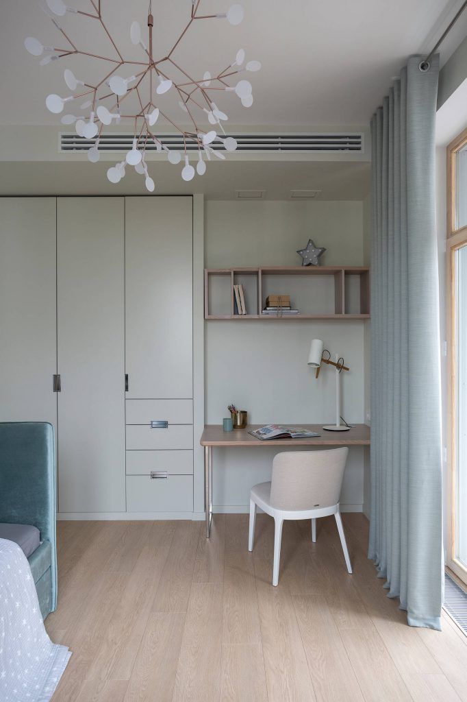 Pentru fiecare copil au fost amenajate camere separate care, desi nu au o suprafata foarte mare, datorita aranjamentului mobilei si a paletei de culori folosita par mai spatioase.