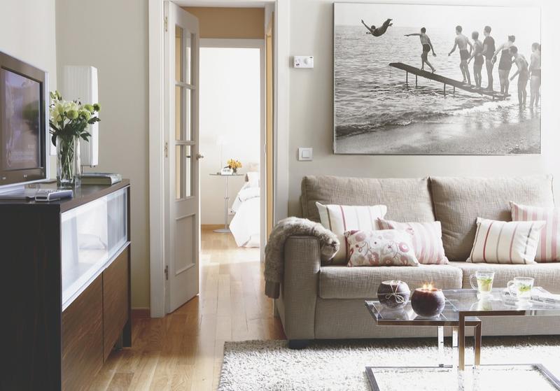 Accentul s-a pus pe obtinerea de spatii luminoase, de aici si nuantele deschise ale finisajelor si decoratiunilor. Totul se imbina armonios spre a sustine eleganta unui spatiu nu foarte generos.