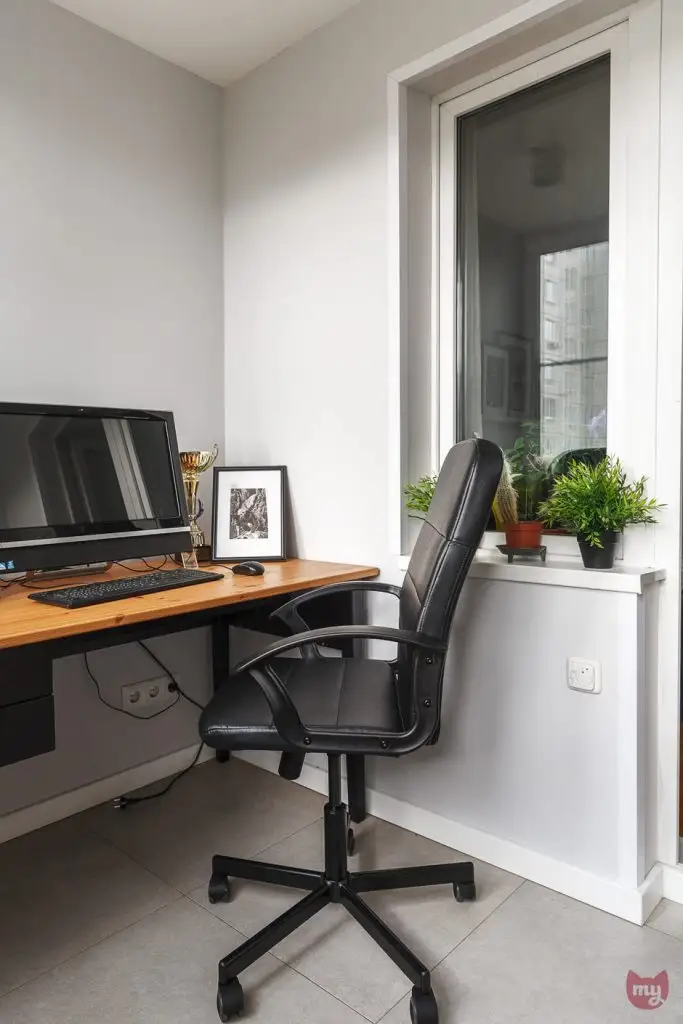 Chiar si in spatiul mic al acestui dormitor a fost integrat un dulap pentru haine; cu o usa alba si una acoperita de oglinda, efectul de luminos si largire a spatiului este garantat. In balconul aferent dormitorului a fost amenajat si un birou, un spatiu de lucru util pentru ambii parteneri.