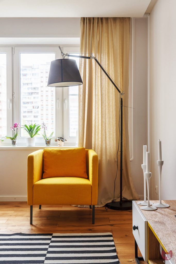 Cromatica descrie pe fundal un ton neutru, cu accente de culori menite sa deschida si sa invioreze atmosfera. Fotoliul galben impreuna cu lampadarul Tolomeo descriu un minunat colt de lectura amenajat la fereastra. Plantele aduc un strop de verde amenajarii. De altfel, le vom regasi in mai toate incaperile principale.