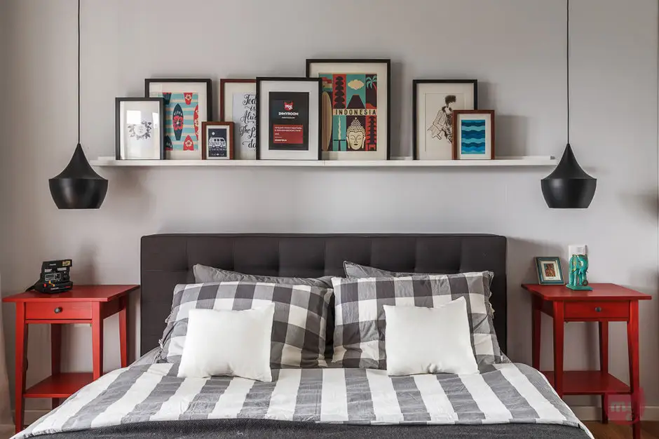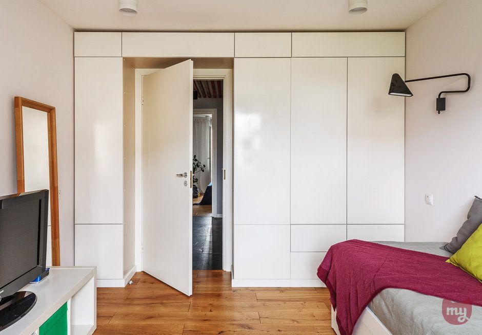In dormitorul cel mic este de remarcat modul cum au fost amenajate spatiile de depozitare, de o parte si cealalta a usii, oferind astfel o varietate de a stoca diferite tipuri de lucruri.
