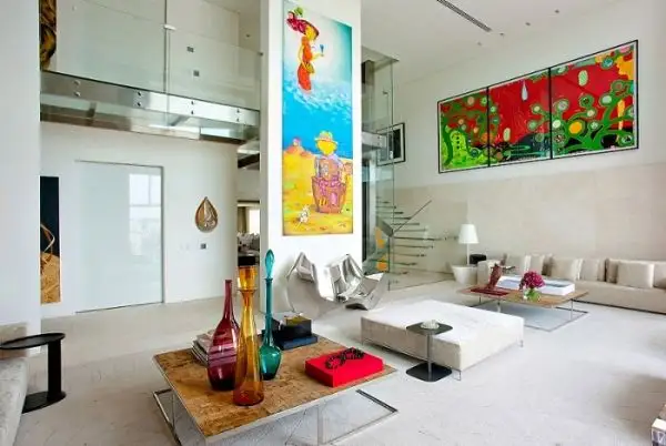 Operele de arta pictate pe sticla transforma orice living intr-un decor deosebit. Etajerele si rafturile din sticla sunt in tendinte si confera livingului un aer elegant.